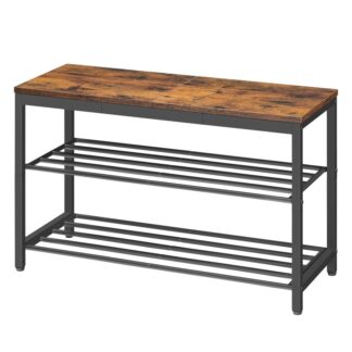 Industriële stijl schoenenopslagbank, Rustiek bruin en zwarte ingangsbankorganisator, 3-Laagschoenrek voor kast, Schoenplank met houten bovenste stoel, Ladingen 300 lb, Ruimtebesparend