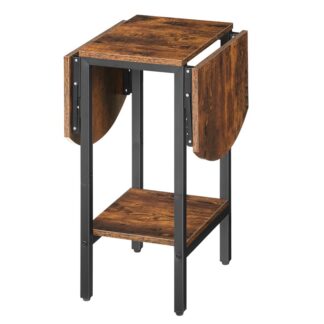 Folding Drop Leaf Side Table, Rustic Brown and Black 2-Tier Sofa End Table with Expandable Desktop, Small Tall Coffee Table, for Small Spaces, Living Room, Bedroom, Dorm, Apartment