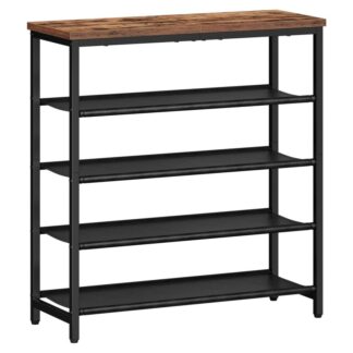 Деревенская коричневая стойка для обуви, Ретро 5-уровневой организатор хранения обуви для шкафа и входа, 4 PU полки, держит 12-16 Пар обуви, Прочный металлический каркас, Небольшие пространства