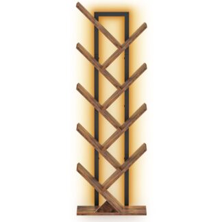 Giá sách của cây màu nâu mộc mạc, Tủ sách 9 tầng công nghiệp với đèn LED, Kệ sách tiết kiệm không gian, Giữ sách, CD, Trò chơi, Tủ sách tự do cho văn phòng, Phòng khách, Phòng ngủ